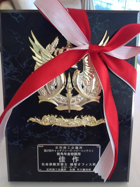こちらは平成25年度足利商工会議所キャッチフレーズ・コピーコンテスト入賞時の楯です。